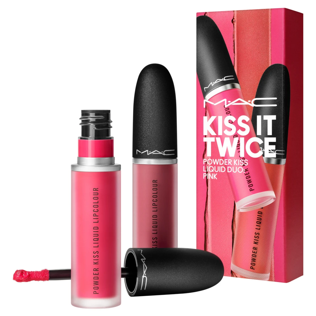 Let your pout take centre stage with two full-sized soft-focus, moisture-matte liquid lip colours in pink shades. Experience a weightless kiss of colour delivering ten hours of moisture. Its whipped, mousse-like texture softly and evenly kisses lips with just the right amount of non-settling, non-flaking, comfortable colour. The special blend of vitamin E powders and emollient properties provides excellent cushion, flexibility, wear and moisture that will leave lips looking and feeling soft and smooth all day. Each lip kit comes ready to gift or keep. Available at a stellar value – just for you.